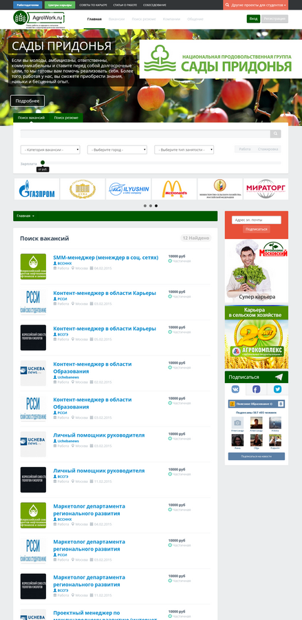 Agrowork.ru посещают десятки тысяч пользователей, которые находятся в постоянном поиске работы. Воспользовавшись медийной рекламой, вы сможете привлечь внимание абитуриентов, студентов и выпускников.